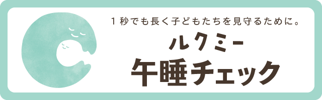 0歳児~2歳児クラスは、午睡があります。ご家庭からお布団セット(敷き布団・タオルケット等)を持参してください。0歳児クラスは、月齢に応じて午睡の時間を取っています。お昼寝中の園児のうつ伏せ寝や体動停止を検知し、 いち早く対応するために、当園では「ルクミー午睡チェック」を導入しています。